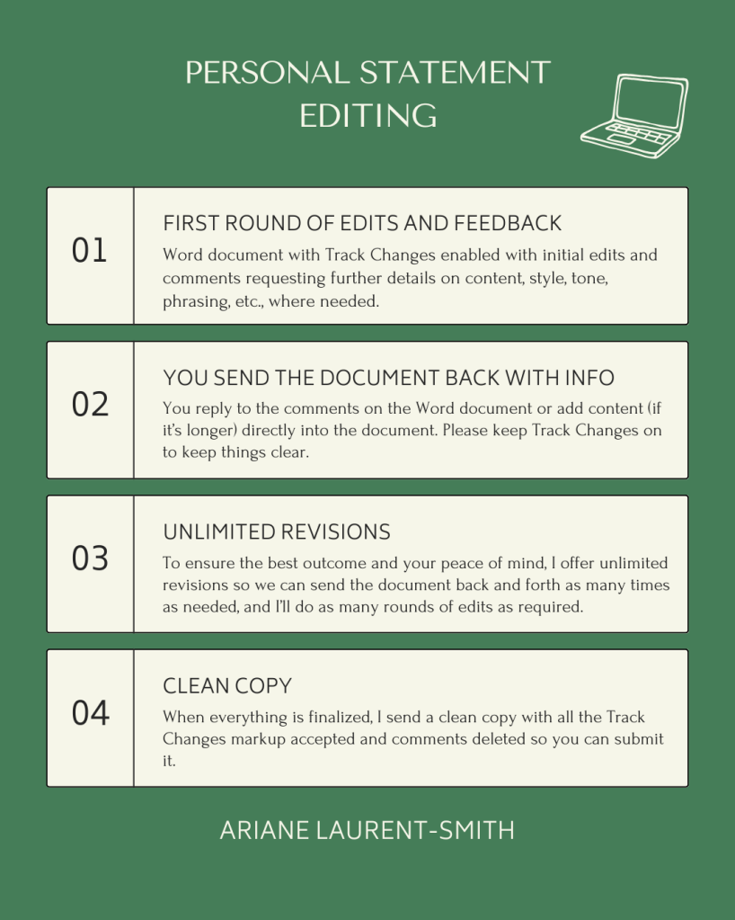 Personal statements edited by me have received exceptional feedback from admissions tutors at top universities, including that they were the best seen in that application round.